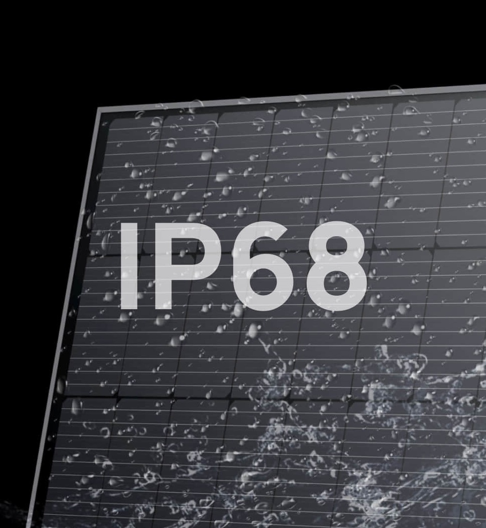 Панели не страшна влага и грязь, сильный ветер (до 200 км/ч) и даже снегопад - она имеет клас водонепроницаемости IP68. *Водонепроницаемость и пыленепроницаемость были протестированы в контролируемых лабораторных условиях с рейтингом IP68 в соответствии со стандартом IEC 60529 (максимальная глубина воды 1 метр на срок до 72 часов).