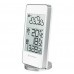 Погодная станция способна фиксировать изменения барометрического давления и на основании этих изменений выводить на дисплей краткосрочный прогноз на ближайшее время в виде барометрических символов прогноза погоды. На дисплее отображаются символы(ясно, переменная облачность, облачно, дождь, ливень, снег, сильный снегопад) Температура в помещении: