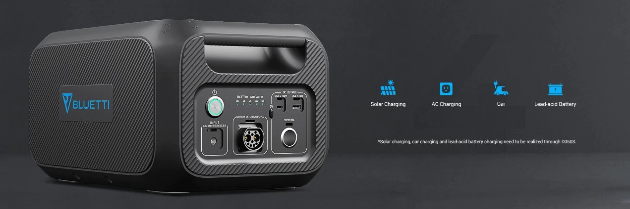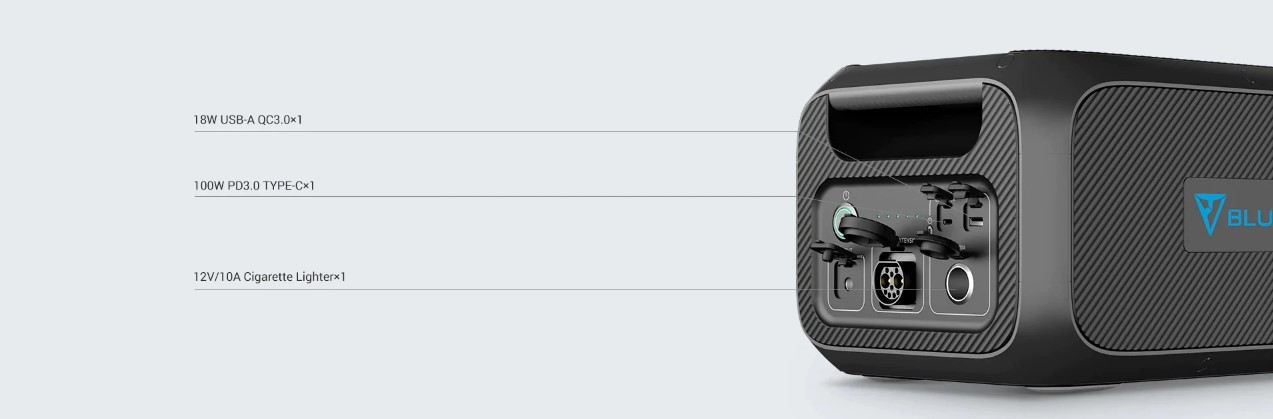 Для зарядки ваших дорожных принадлежностей, таких как смартфоны, ноутбуки, камеры, вентиляторы, фонари и т. д. на боковой стороне модуля батареи расширения Bluetti B230 батарея имеет порт USB, порт USB-C (100 Вт) и выход 12 В / 10 А. Упростите зарядку своих предметов первой необходимости в дороге, и он поддерживает сквозную зарядку.