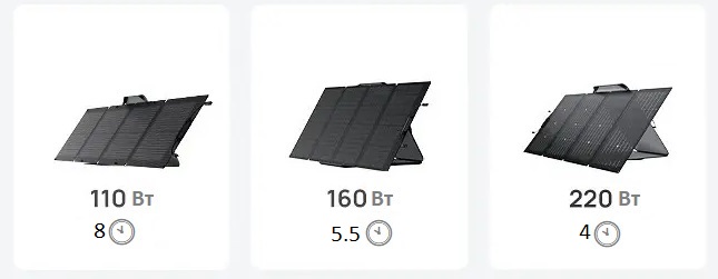 4 часа - зарядка от солнечной панели 220 Вт макс