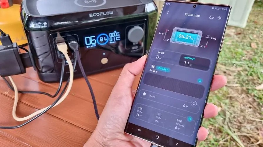На LED-панели River mini вы можете следить за информацией о том, на сколько хватит заряда, какая выходная мощность на каждое зарядное устройство или с какой скоростью происходит зарядка. К тому же к станции можно подключиться с помощью приложения EcoFlow и управлять устройством дистанционно, включать или выключать порты зарядки по вашему выбору. В приложении вы можете получить доступ к настройкам мощности, таким как уровни зарядки и разрядки, скорости зарядки переменного тока, управлять интеллектуальным генератором и многое другое.