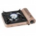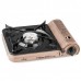 Одноконфорочная портативная газовая плитка с пъезоподжигом мощностью 2900 Вт, работает от одного газового баллона, помещённого внутри плиты. Главным достоинством такой плитки является компактность, высокий уровень безопасности, легкость транспортировки и подключения. Баллон, от которого работает плитка, легко и быстро устанавливается или отсоединяется при замене. Для комфортной эксплуатации, плитка оснащена пъезоподжигом и ручкой для регулировки мощности горения горелки, которая также позволяет рационально использовать газ. Конфорка равномерно рассеивает пламя, посуда не обгорает и не вымазывается снаружи. Эмалированная подставка на плитке надежно защищает горелку от ветра, а углубление в ней не дает жидкости с посуды потушить пламя. По своей мощности плитка превосходит все существующие на рынке модели: 2900 Вт. При такой мощности литр воды закипает за 4 минуты и 46 секунд.
