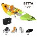 Каяк Aqua Marina Betta Leisure изготовлен ​​из армированного многослойного ПВХ-материала и имеет нескольких воздушных камер. Разработанные с учетом безопасности, стабильности и эксплуатационных характеристик, эти каяки являются идеальными лодками с низким уровнем обслуживания для тех, кто хочет выйти на воду в универсальном, легком каяке. Лёгкие поездки на выходные или прогулки по озёрам и рекам - вот где эти каяки будут превосходны. Регулируемая конструкция подножки для комфортного путешествия. Удлиненный дизайн носа для защиты от брызг с жесткой защитой для носа и резиновой ручкой для переноски. Высокопроизводительная система плавников для отличного отслеживания.