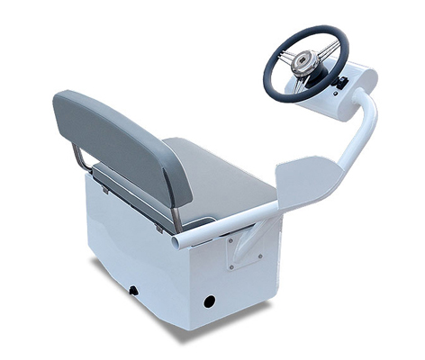- Комбинированная двухместная стойка S-08 со складной спинкой, вместительным рундуком, водоотливным клапаном и кронштейном для дистанционного управления судном.