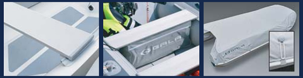 • 3-камерный надувной баллон из 5-слойного ПВХ Valmex® или Hypalon® с плавными обводами и закругленным носом оригинального дизайна GALA-JET.