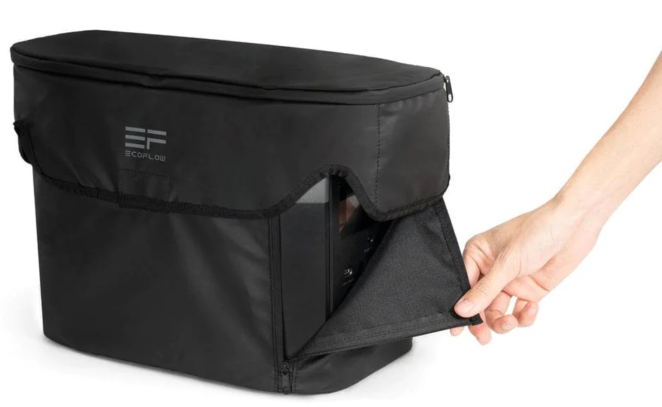 Сумка защищает батерею от атмосферных воздействий, ударов, от воды, мусора и при этом сохраняет легкий доступ к ней. Полупрозрачная крышка ЖК-экрана позволяет легко контролировать DELTA Mini, защищая его от царапин.