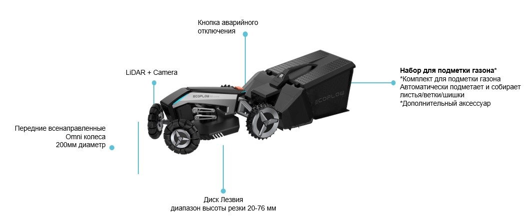 Описание Газонокосилка Ecoflow Blade с набором для подметания газона